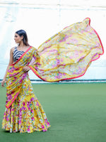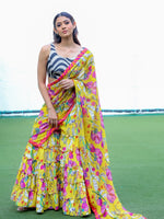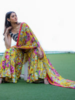 Elevate Your Style with our Classy Drape Fusion Wear - A Stunning 3-Piece Set Featuring Georgette Dupatta, ZEBRA Blouse, and Layered Bottoms.