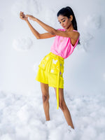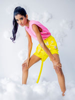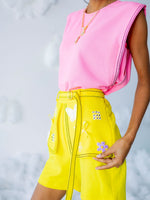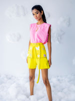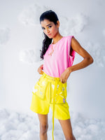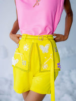Black anchored armhole with Dreamy patches on flap attached to shorts and belt with black anchored on border.
